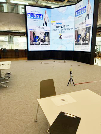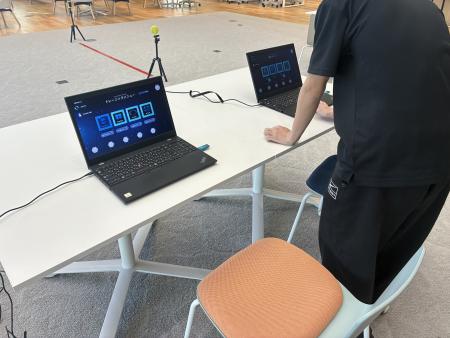 当日は、日常生活やスポーツシーンにおいて重要となる動体視力を測定する「アローズアイ」と、身体機能の基礎指標である5m歩行測定をオフィス内スペースにて実施し、